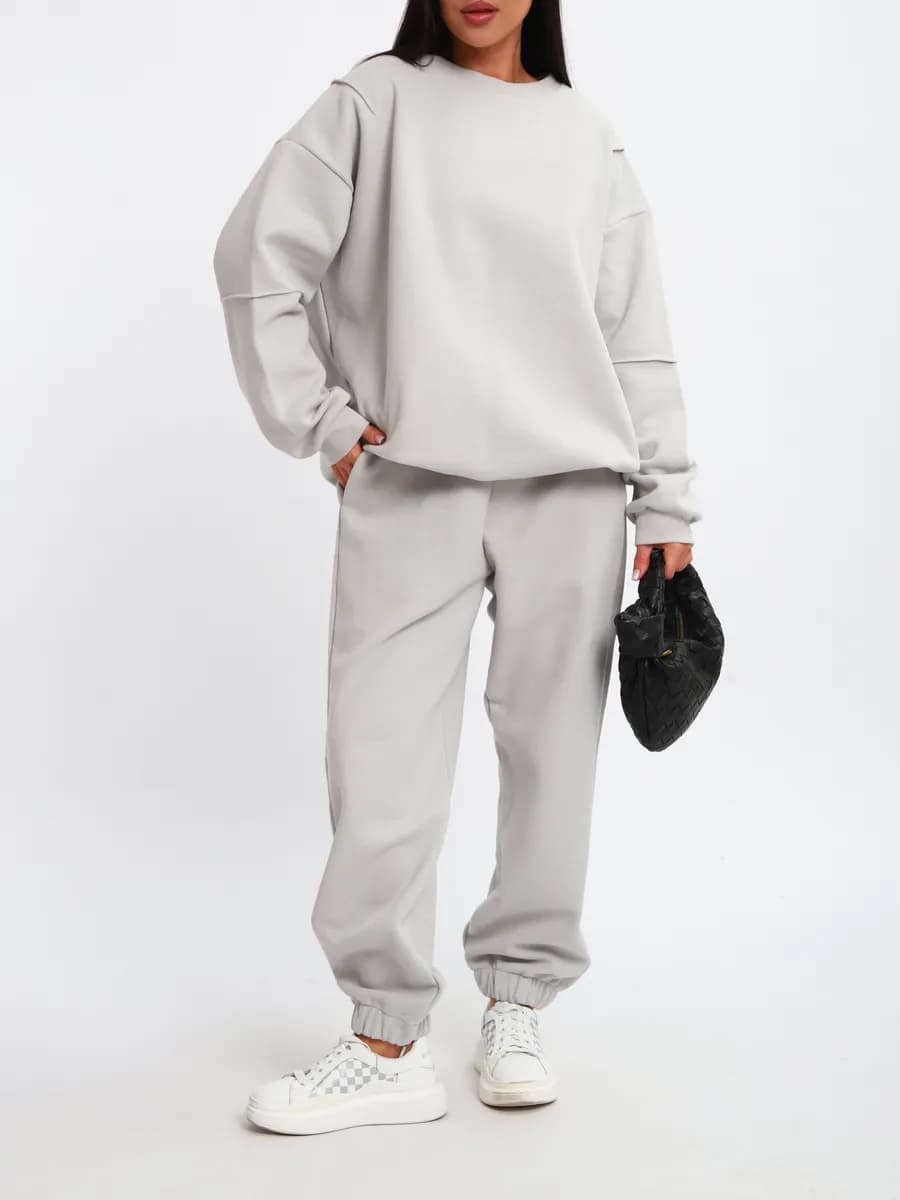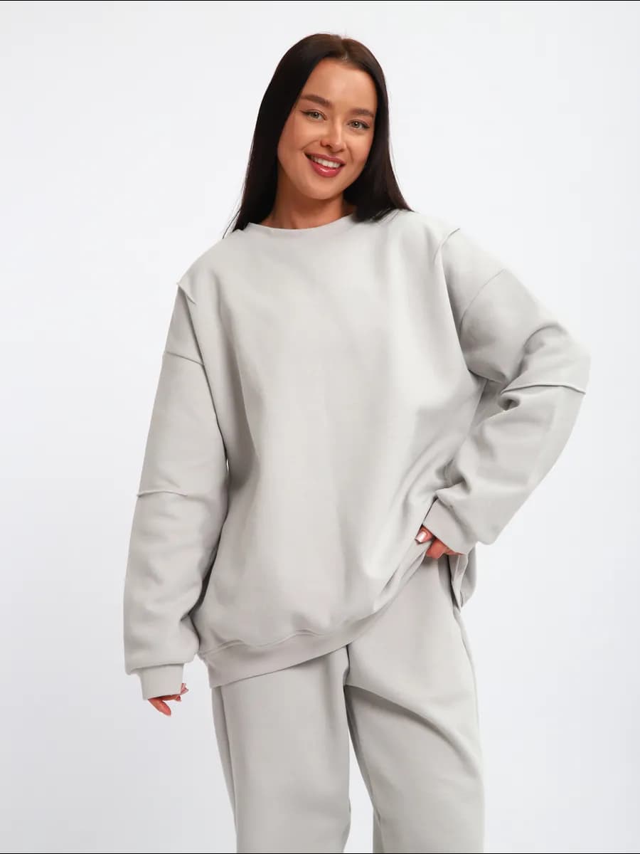 Авторский костюм со свитшотом и брюками-джоггерами. Мягкая ткань с peach-эффектом, oversize крой, резинка на манжетах. Идеальный баланс комфорта и стиля.